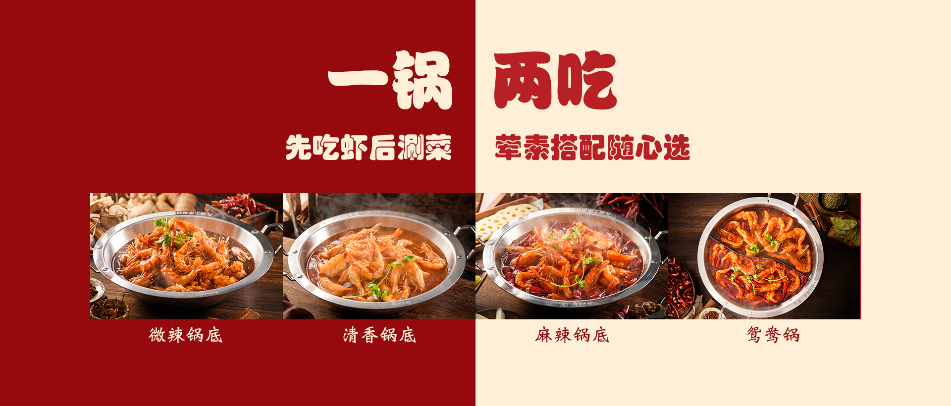 食材精選進口大蝦,搭配秘制底料制作而成,研發(fā)出一鍋兩吃的飲食模式(先吃蝦后涮菜,葷素搭配隨心選),打造出綠色健康的飲食新文化。